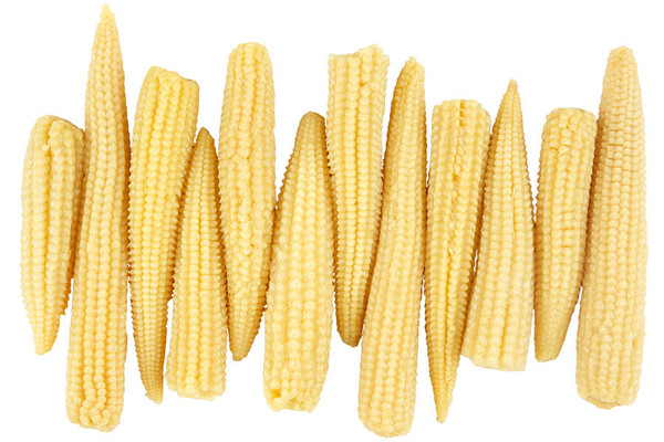 Baby corn is produced from regular corn plants which are harvested early while the ears are very immature, resulting in small ears called “baby corn”. Baby corn is high in folate, a B-vitamin, a good source of several nutrients as potassium, B-6, riboflavin, vitamin C and fiber.